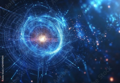 The galaxy is surrounded by a blue and purple background with a few bright blue