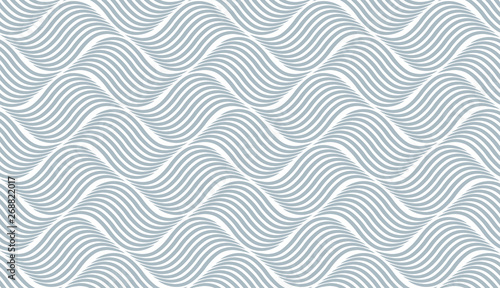 The geometric pattern with wavy lines. Seamless vector background. White and blue texture. Simple lattice graphic design