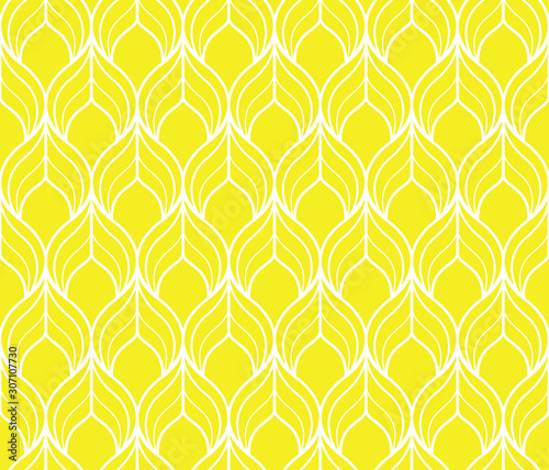 The geometric pattern with wavy lines. Seamless vector background. White and yellow texture. Simple lattice graphic design