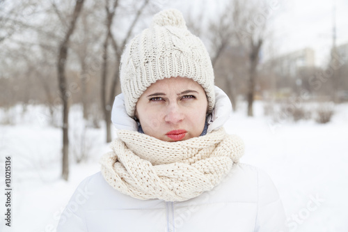 The girl in a winter white down-padded coat
