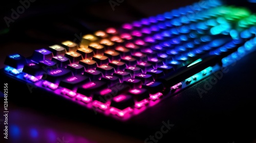 The glow of a neon keyboard symbolizes modern internet culture and hacking.