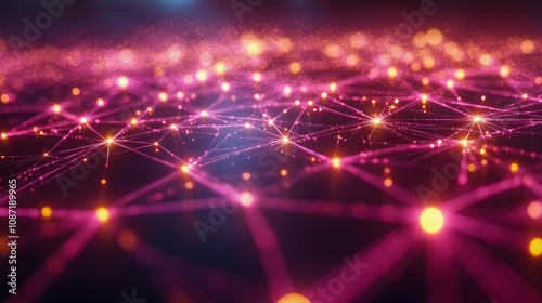 The glowing connections create a mesmerizing display of technology and creativity, reflecting a digital network at night with vibrant colors