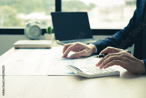 The hand of businessman sit at their desks and calculate financial graphs showing results about their investments, plan a successful business growth process