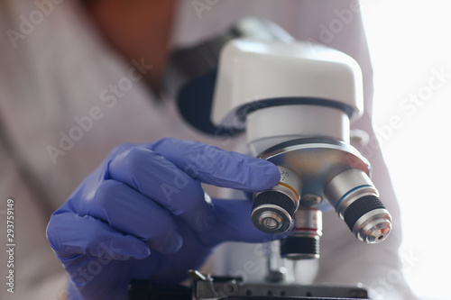 The head microscope on the background laboratory is a study human biology analyzes for non-compliance with the requirements organization public health at international level