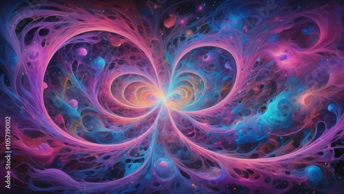 The high-resolution digital painting visualizes the depths of the interweaving of galactic consciousness