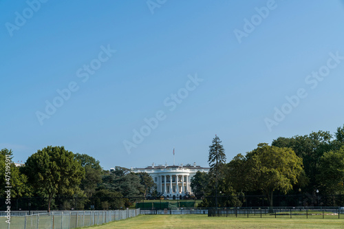 The iconic view on The White House on sunny day, Washington DC, USA. The concept of executive branch of American political system. President administration.