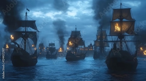 The image conveys a city overwhelmed by water, complete with prominent buildings and ships