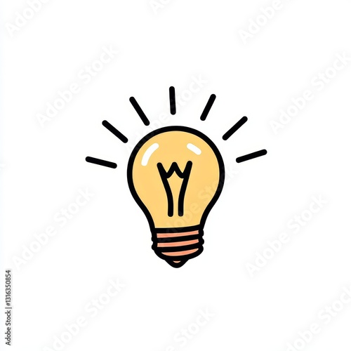 The image depicts a light bulb in black lines, surrounded by radiating lines