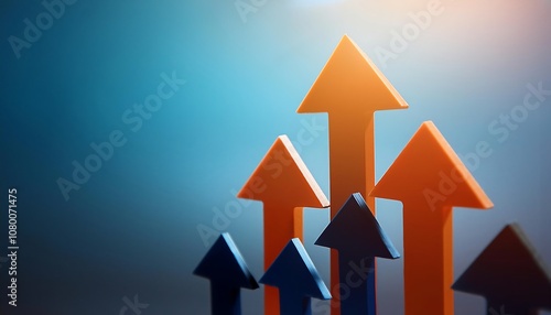 The image features various upward arrows in different colors, symbolizing growth, progress, and positive trends against a gradient background.