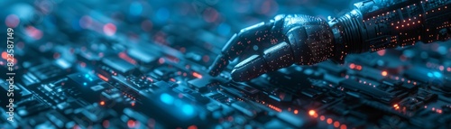 The image is a close-up of a robotic hand