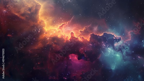 The image is an abstract painting of a nebula. It has a vibrant mix of colors. It is a beautiful and unique piece of art that would be perfect for any home or office.