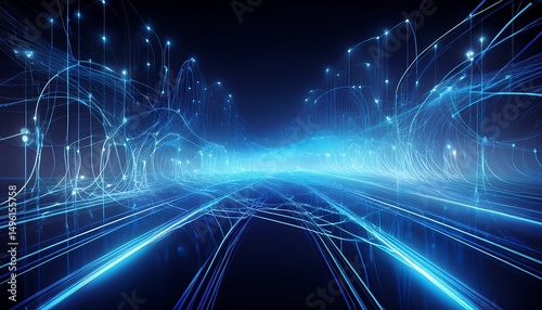 the image showcases an abstract background featuring glowing blue lines and a network of interconnected nodes the composition highlights a dynamic and futuristic theme