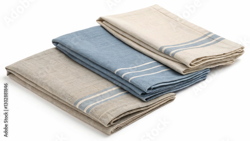 The image showcases three folded napkins, their neutral colors and contrasting stripes presented against a white backdrop, highlighting their simple and practical design