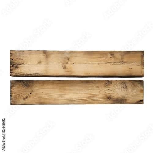 The image shows two horizontal, rustic, light brown wooden planks isolated against a black background.