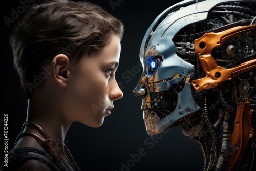 The interaction between a teen and a robot reflects their first exposure to the complexities of state-of-the-art technology