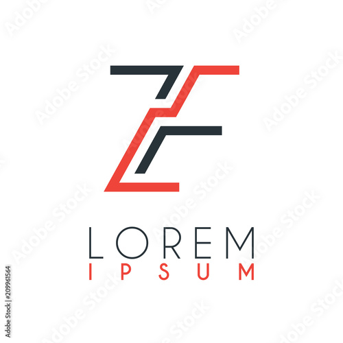 The logo between the letter Z and letter F or ZF with a certain distance and connected by orange and gray color