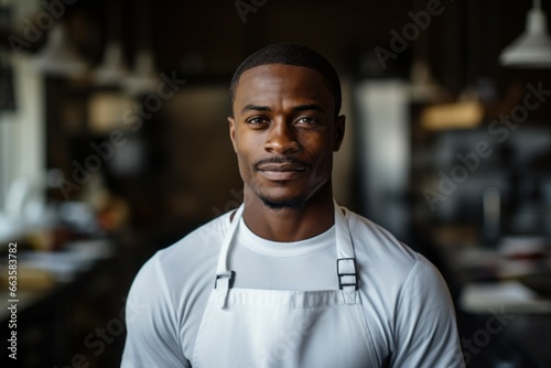 The man is a professional chef in the restaurant or hotel business. Portrait with selective focus and copy space