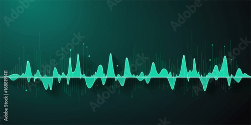 The medical monitor shows an abstract green line graph of a heartbeat pulse, depicting an EKG wave of a cardiogram on a dark background