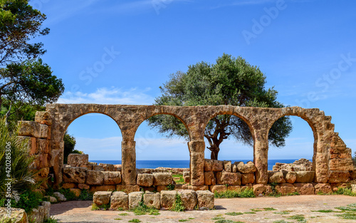 The Mediterranean sea through Roman ruins arches