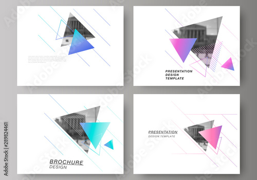 The minimalistic abstract vector illustration of the editable layout of the presentation slides design business templates. Colorful polygonal background with triangles with modern memphis pattern.