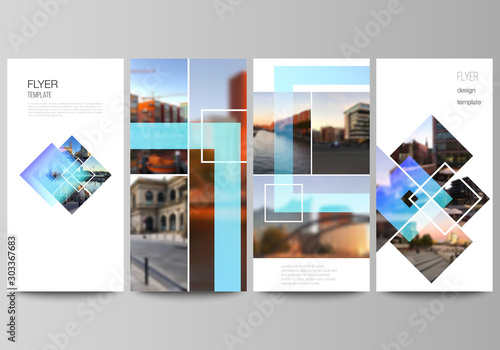 The minimalistic vector illustration of the editable layout of flyer, banner design templates. Creative trendy style mockups, blue color trendy design backgrounds.