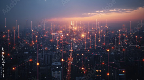 The modern creative communication and internet network connect in smart city . Concept of 5G wireless digital connection and internet of things future.