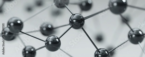 The Molecule Model of Glossy Black Atoms Connected by Metallic Bonds in Closeup