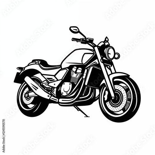 The motorcycle, angle view, icon, simple black and white sketch, on a white background, image for printing, without people