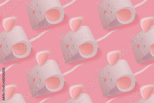 The mouse is made of white paper on a pink background.