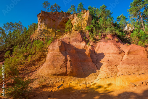 The Ochre Path le Sentier des Ocres through the Red Cliffs of Roussillon Les Ocres, a nature park in Vaucluse, Provence, France.
