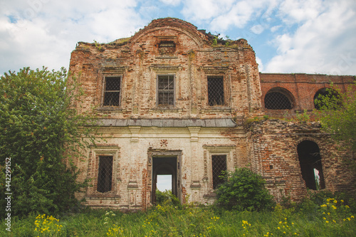the old building of an abandoned orthodox church built of red brick gradually collapses without people