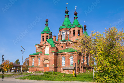 The old church of the Tikhvin Icon of the Mother of God in Makaryev on a sunny September day. Kostroma region, Russia