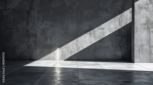 The photo shows a dark concrete room with a single ray of light shining through a crack in the ceiling. The floor is wet and reflecting the light.