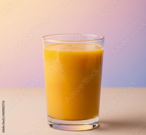 The picture shows mango juice that has been provided in a glass.