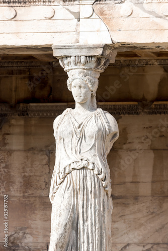 The porch of the Caryatids, a detail of the Erechtheion at the Acropolis of Athens, Greece