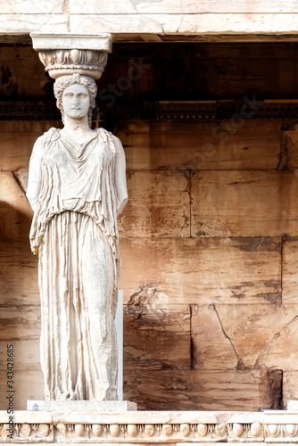 The porch of the Caryatids, a detail of the Erechtheion temple at the Acropolis of Athens, Greece