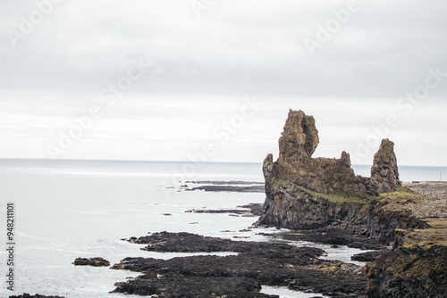 The rock formation at Lóndrangar on the Snæfellsnes Peninsula.