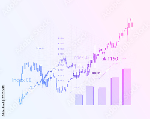 The schedule for changing the stock market graph in a positive direction. The investment economy and the development of new financial tools for trade online. Vector