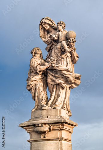 The sculpture "Saint Anna with Child" on the Charles Bridge in Prague, Czech Republic