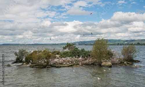 The seagull bird nest in lake Rotorua the second largest lake in New Zealand.