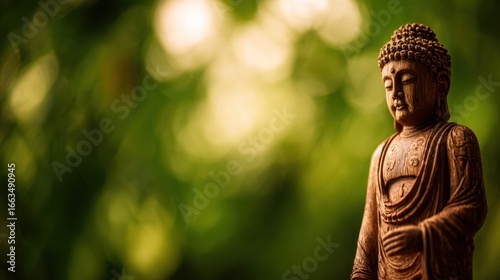 The Serene Buddha Statue Surrounded by a Tranquil Nature Background