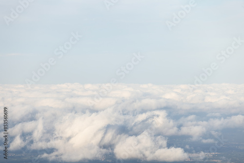 The sky is filled with clouds, creating a sense of calm and serenity. The clouds are scattered throughout the sky, with some appearing closer to the ground and others higher up