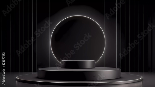 The Sleek and Modern Black Podium Display: Premium Technology Showcase for Cutting-Edge Devices. Perfect for presentations, trade shows, advertisements, and promotional materials.
