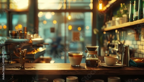 The sophisticated aroma of a coffee icon permeates Glow HUD, contrasted with a blurred cafe interior