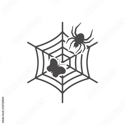 The spider has caught a butterfly in the net icon in flat style.Vector illustration.