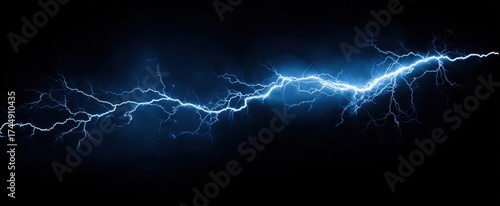 The striking illumination of a vivid blue lightning bolt against a dark sky.