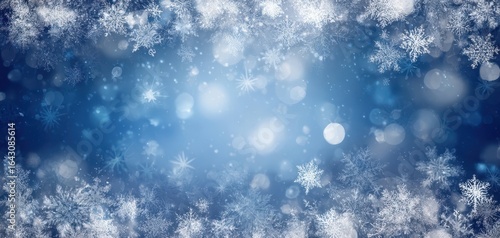 The stunning blue background with delicate snowflakes and shimmering bokeh effects.