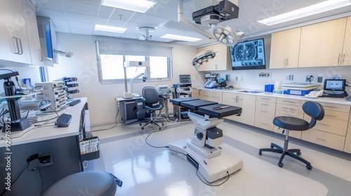 The surgery room showcases advanced neurosurgical equipment, including specialized microscopes and precision instruments.