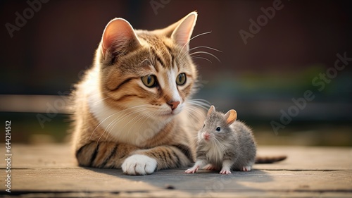 the suspenseful moment of a cat stalking a mouse. The scene epitomizes the age-old game of predator and prey.