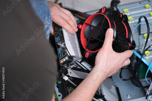 The technician took the cooler out of the computer